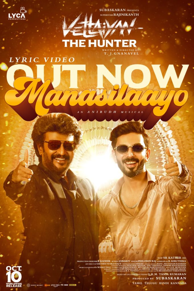 லைகா புரொடக்ஷன்ஸ் தயாரிப்பில் வெளியாகவிருக்கும் தமிழ்த் திரைப்படமான ‘வேட்டையன்’ படத்திலிருந்து மிகவும் எதிர்பார்க்கப்பட்ட முதல் பாடலானது வெளியாகியுள்ளது, மேலும் இது ரசிகர்கள் மற்றும் இசை ஆர்வலர்களிடையே உற்சாகத்தை அதிகரித்துள்ளது. “மனசிலாயோ” என்று பெயரிடப்பட்டுள்ள இந்தப் பாடல், ஆற்றல்மிக்க தாளங்கள் மற்றும் ஆத்மார்த்தமான மெல்லிசைகளின் கலவையாக மட்டுமல்லாமல், இது படத்தின் கருப்பொருள்களான வலிமை, உறுதிநிலை மற்றும் அதிரடியான காட்சிகள் ஆகியவற்றின் சாரத்தை முழுமையாகப் படம் பிடிக்கிறது.