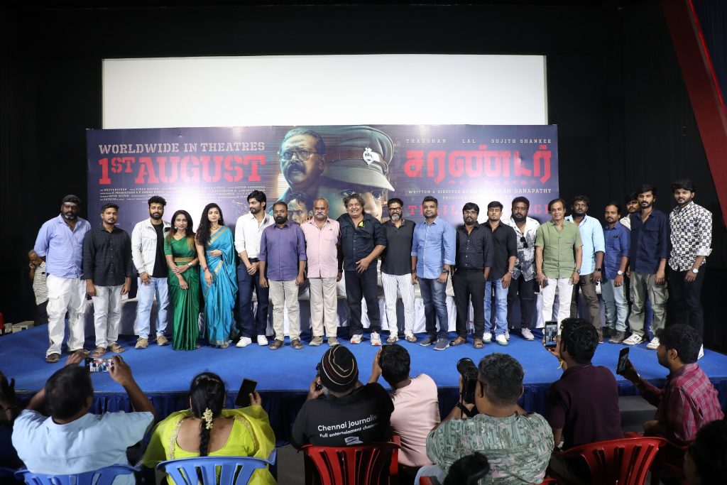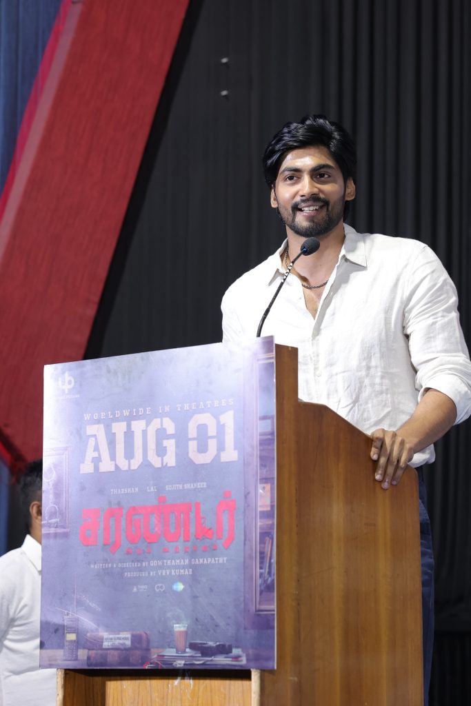 “சரண்டர்”. இப்படம் வரும் ஆகஸ்ட் 1 ஆம் தேதி திரைக்குவரவுள்ள நிலையில், இப்படத்தின் இசை மற்றும் டிரெய்லர் வெளியீட்டு விழா, படக்குழுவினருடன், திரை பிரபலங்கள் கலந்துகொள்ளப் பத்திரிகை ஊடக நண்பர்கள் முன்னிலையில் கோலாகலமாக நடைபெற்றது. இந்நிகழ்வினில்…இசையமைப்பாளர் விகாஸ் படிஸா பேசியதாவது.. ‘ எனக்குத் தமிழில் திரையரங்கில் வெளிவரும் முதல் படம், இதற்கு முன் தமிழ் ராக்கர்ஸ் வெப் சீரிஸ் செய்திருந்தேன், எனக்கு முதல் வாய்ப்பளித்த அறிவழகன் சாருக்கு நன்றி. இப்படத்தின் தயாரிப்பாளர் குமார் சாருக்கு நன்றி. இப்படத்தில் எல்லோருமே கலக்கியிருக்கிறார்கள். இயக்குனர் கௌதம் சார் படத்தை வேற லெவலில் செய்துள்ளார். நிறைய உழைத்துள்ளார். தர்ஷன் இதில் கலக்கியிருக்கிறார். படம் பார்த்து அவரா இது என ஆச்சரியப்பட்டேன். என் மியூசிக் குழுவிற்கு நன்றி. ஆகஸ்ட் 1 அன்று படம் வெளியாகிறது எல்லோரும் ஆதரவு தாருங்கள் நன்றி’ என்றார்.எடிட்டர் ரேணு கோபால் பேசியதாவது… ‘ இது என் முதல் படம், என்னை அறிமுகப்படுத்திய இயக்குநருக்கும், தயாரிப்பாளருக்கும் நன்றி. படம் மிக நன்றாக வந்துள்ளது’ என்றார்.கலை இயக்குநர் மனோஜ் பேசியதாவது… இது என் மூன்றாவது படம், அறிவழகன் சார் தான் என்னை அறிமுகப்படுத்தினார், அவரது அஸிஸ்டெண்ட் கௌதம் சார் இப்படத்தில் வாய்ப்பு தந்துள்ளார். செட் எல்லாம் ரியலாக இருக்க வேண்டும் என முதலிலேயே சொல்லி விட்டார். அப்படித்தான் எல்லாவற்றையும் பார்த்துப் பார்த்து செய்துள்ளோம். படம் மிக நன்றாக வந்துள்ளது என்றார்.நடிகர் மன்சூர் அலிகான் பேசியதாவது.., ‘ தயாரிப்பாளர் அமெரிக்காவிலிருந்து வந்து இப்படத்தை எடுத்துள்ளார். தயாரிப்பாளர் குமாருக்கு வாழ்த்துகள். இயக்குனர் கௌதம், ஈரம் அன்பழகனிடமிருந்து வந்து இப்படத்தை எடுத்துள்ளார். மிக அற்புதமாக இப்படத்தை எடுத்துள்ளார். செட் எல்லாம் அப்படியே ஒரிஜினலாக இருந்தது. தர்ஷன் அருமையாக நடித்துள்ளார். இந்த மாதிரி புதியவர்களை ஊக்குவிக்கும் தயாரிப்பாளருக்கு என் வாழ்த்துகள். சினிமாவில் தொடர்ந்து ஒரே மாதிரி படங்கள் மட்டுமே வருகிறது அது மக்களுக்கு போரடிக்கிறது. அவர்களுக்கு வித்தியாசமான படங்களைக் கலைஞர்கள் தர வேண்டும். அதே மாதிரியான படமாக சரண்டர் சரியான நேரத்திற்கு வருகிறது. இப்படம் பெரிய வெற்றி பெற வாழ்த்துகள்’ என்றார்.நடிகை பாடினி குமார் பேசியதாவது… எனக்கு வாய்ப்பளித்த கௌதம் சாருக்கு நன்றி. சரண்டர் படம் ஹார்ட் ஒர்க், விடாமுயற்சி எல்லாம் சேர்ந்தது தான் இப்படம். கேமராவுக்கு முன்னும் பின்னும் எல்லா கலைஞர்களும் மிகவும் கடினமாக உழைத்துள்ளனர். ஆகஸ்ட் 1 ஆம் தேதி இப்படம் திரைக்கு வருகிறது. நீங்கள் த