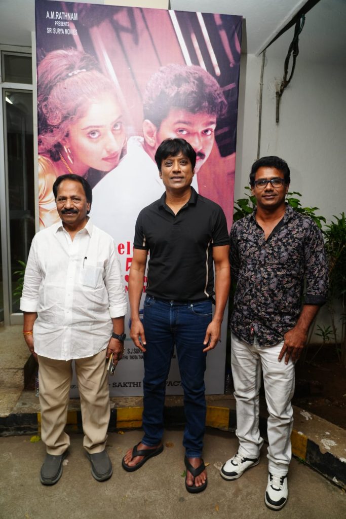 ஏ.எம்.ரத்னம் தயாரித்து, எஸ்.ஜே.சூர்யா இயக்கிய படம் குஷி. தளபதி விஜய், ஜோதிகா நடிப்பில் 2000ஆம் ஆண்டு வெளியாகி மாபெரும் வெற்றிப் பெற்றது. 25 ஆண்டுகளுக்குப் பிறகு மீண்டும் திரையரங்கில் செப்.26ஆம் தேதி வெளியாகிறது. சக்தி ஃபிலிம் ஃபேக்டரியின் சக்திவேலன் விநியோகம் செய்கிறார். அதற்கான பத்திரிகையாளர் சந்திப்பில் கலந்து கொண்ட கலைஞர்கள் பேசியதாவது