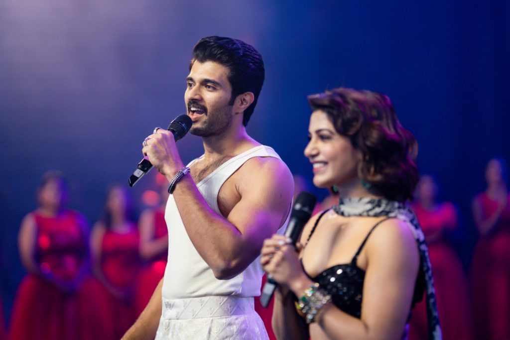 இந்தப் படத்திற்காக அவர் எவ்வளவு கஷ்டப்பட்டார் என்பதை சொல்ல முடியாது. ஏப்ரல் மாதம் படத்தை மிகவும் மகிழ்ச்சியுடன் தொடங்கினோம். முக்கிய பகுதியில் படப்பிடிப்பு நிறைவடைந்தது. ஜூலையில் 30 முதல் 35 சதவீத படப்பிடிப்பு நிறைவடைந்த போது, ‘தனக்கு உடல்நிலை சரியில்லை’ என்று சமந்தா கூறினார். ‘நீ மிகவும் அழகாக இருக்கிறாய்’ என நானும், சிவாவும் சமந்தாவிடம் கூறுவது வழக்கம். முதலில் மூன்று நாள் நீடிக்கும் என நினைத்தேன். பிறகு இரண்டு வாரங்களாகும் என்று நினைத்தோம். ஆனால் உடல் நிலையில் முன்னேற்றம் ஏற்படவில்லை. மற்றொரு திரைப்படத்தின் விளம்பர நிகழ்வில் நான் கலந்து கொண்டிருந்த போதுதான் அவரது உடல்நிலை குறித்து அறிந்தேன். ஏனென்றால் கலைஞர்களாகிய நாம் பார்வையாளர்களை சிரிக்க வைக்க வேண்டும். எங்கள் துயரங்களை சொல்ல விரும்பவில்லை. சமந்தா சில நாட்களாக உடல்நிலை சரியில்லாமல் இருந்ததால்… எங்களுடன் பேசுவதை நிறுத்திவிட்டார். அவர் மிகவும் போராடினார். ஆனால் ஒரு சந்தர்ப்பத்தில் சமந்தா தனது உடல்நிலை குறித்து பேச முன்வந்தார். ஏனெனில் கொரோனா தொற்று பாதிப்பிற்குப் பிறகு பலர் இதே போன்ற உடல்நல பிரச்சனைகளை எதிர்கொள்கின்றனர். நானும் உங்களை போலவே போராடுகிறேன் என்று அவர்களுக்கு தைரியம் அளிக்கும் வகையில் தனது உடல்நிலை குறித்து வெளிப்படுத்தினார் சமந்தா. இன்று நாம் விளம்பர நிகழ்வுகளை முன்னெடுக்கும் போது பலர் வந்து, ‘சமந்தா தான் எங்களுக்கு இன்ஸ்பிரேஷன்’ என்று கூறுகிறார்கள். அவர்கள் எதிர்கொள்ளும் பிரச்சனைகளை பகிர்ந்து கொள்கிறார்கள். அவருக்கு இன்னும் உடல்நிலை சரியில்லை. ஆனால் அவர் இன்று எங்களுக்காக இங்கு வந்து என்னுடன் நடனமாடினார். செப்டம்பர் ஒன்றாம் தேதி சமந்தா முகத்தில் சிரிப்பை காண வேண்டும். மேலும் எங்கள் இயக்குநர் சிவாவிற்கு ஒரு ஹிட் கொடுக்க விரும்புகிறோம். சிவா இந்த திரைக்கதையை ‘டியர் காம்ரேட் ‘ படப்பிடிப்பின் போது சொன்ன போது எனக்கு மிகவும் பிடித்திருந்தது. ஆனால் காதல் கதைகள் வேண்டாம் என்று நான் ஒதுங்கிக் கொண்டிருக்கிறேன்.