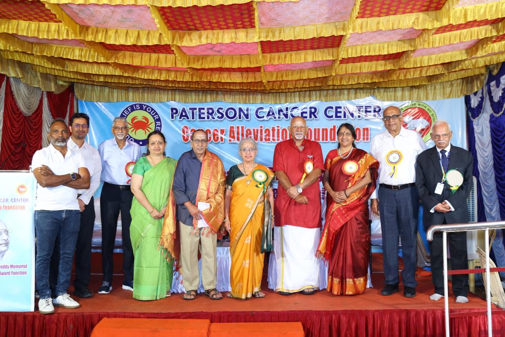 The awardees were felicitated by Dr.S.Vijayaraghavan, MD., Managing Director of Paterson Cancer Center on the voluminous and selfless service to the cancer patients where no patient is denied treatment for want of money. Dr. Aadarsh Raghavan MS., MCh Endocrine and Breast Surgeon conducted this ceremony. Dr.Usha Vijayaraghavan, Director of Paterson Cancer Center delivered the vote of thanks.
